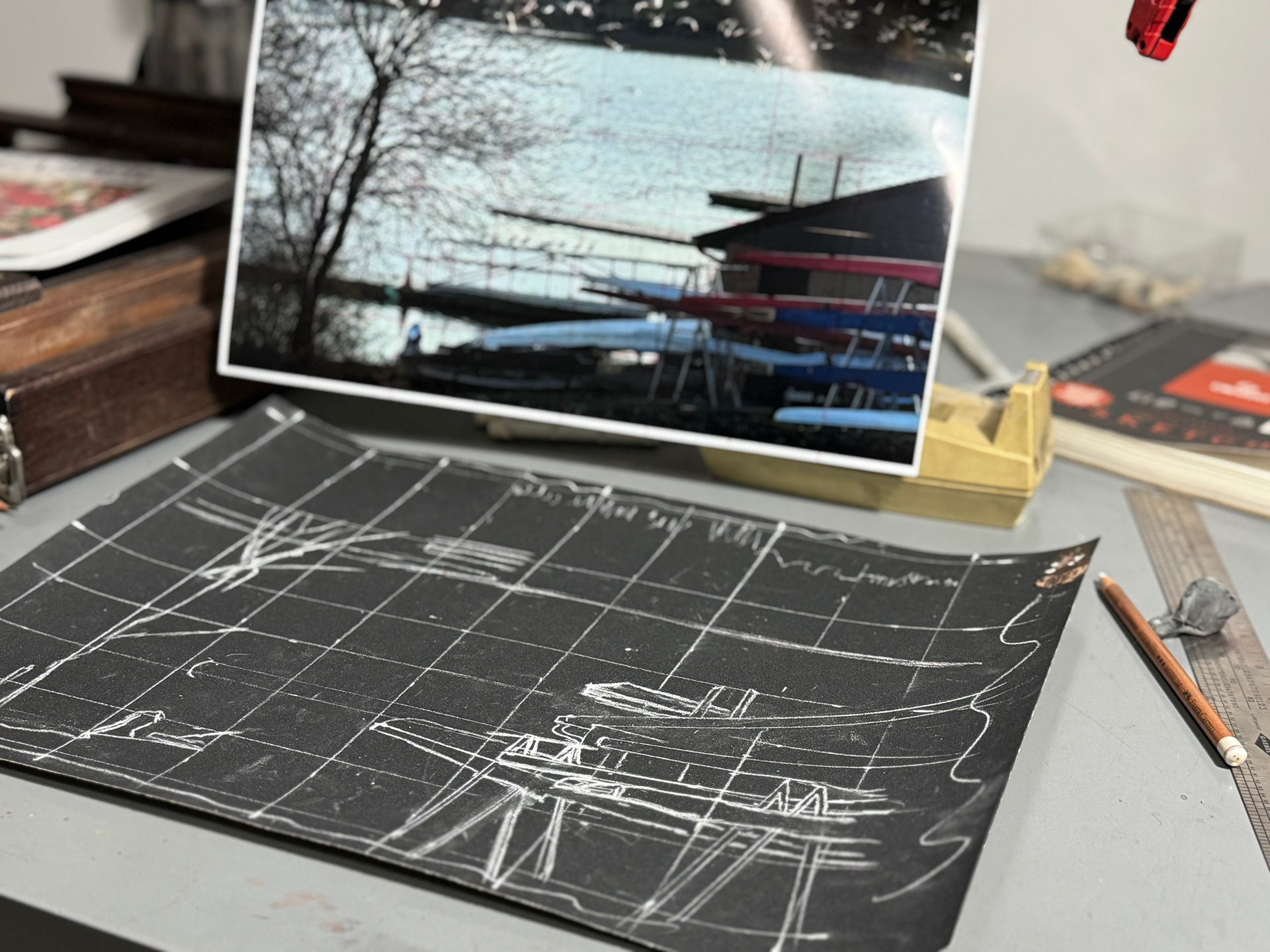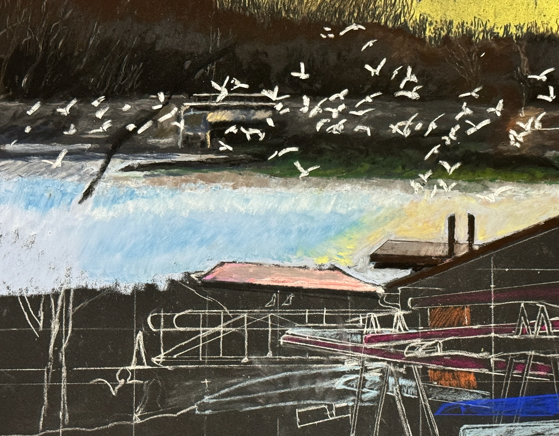I have frequently visited this beautiful park, creating memories, and have equally enjoyed spending time there with my own kids (and dog). Painting this natural scene with its own peaceful color scheme helped me feel relaxed and better, especially when I added the white soaring birds to the last layer.