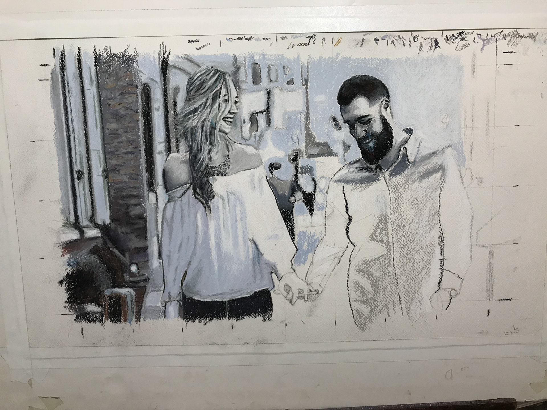 "After we got engaged, John and I walked down Elfreth’s Alley. One of my favorite memories that I’ll cherish forever. Lisa McGovern gave us the most beautiful gift for our shower. ❤️ Thank you for capturing this moment! Your art is unbelievable! I cannot wait to hang this up!"